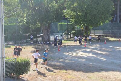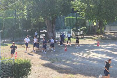 今週は雨の日が多く、先週の金曜日以来の朝の活動(ランニングタイム)でした。スタート時点では日差しがありましたが、子どもたちが走り始めるとくもり空になりました。