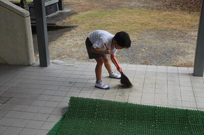 台風14号が過ぎ去りました。この日は台風一過の青空となり、朝の活動を行いました。ラジオ体操、健康観察をして、5分間のランニングタイムです。これまでの蒸し暑さから解放されて、秋のすがすがしい空気に包まれて、気持ちよく活動することができました。ただ、運動場の隅にはイチョウの葉とギンナンが散乱していました。