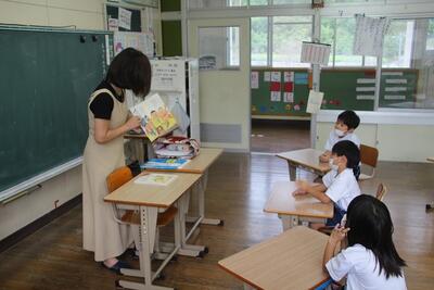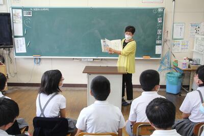 ボランティアグループ読み聞かせの会による読み聞かせがありました。今回は5人の方に来ていただき、各教室で活動をしてもらいました。子どもたちの目が本に引きつけられている様子がよく分かりました。読み聞かせの会の皆さん、ありがとうございました。