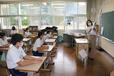 各先生ともに中学校の教科担当なので、その専門性が高く、自分たちが進学する中学校の先生なので、子どもたちが意識しないわけがありません。子どもたちは各先生が発する言葉や姿に、あこがれを抱きながら授業を行っていました。N先生、S先生、ありがとうございました。