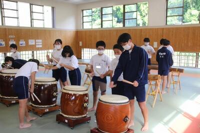 小・中合同伝統文化学習の2回目でした。中学生や講師の方が小学生に分かりやすく教えてくれました。銭太鼓踊りの3年生や棒踊りの4年生がよく覚えていたので、驚きました。5年生がやっている石匠太鼓は難しそうです。地域を学ぶ絶好の機会です。