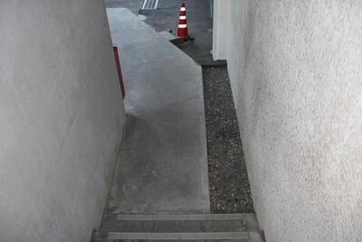 このホームページの記事に度々登場する半地下の駐車場です。校舎下にあるので、日光や雨がさえきられるので快適です。一つだけ悩みがあります。初めて訪れた人が上部の丸くなっている部分に車をぶつけてしまうことです。今年度2回起きています。そこで、頭上注意の看板とペンキを塗りました。本校に初めて来校される場合は、注意をお願いします。
