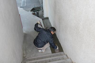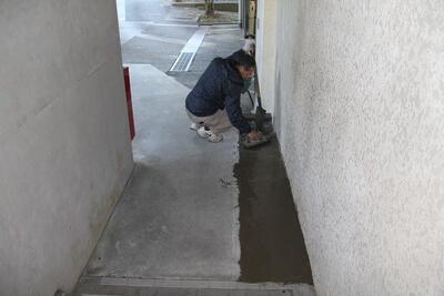 児童が給食センターへ行く渡り廊下の一部に庁務手のM先生がコンクリートをうってくれました。コンクリートが流れ出さないように木枠や支柱を作り、石や砂利を下に敷き詰め、その上に砂利や小石と水・セメントを混ぜ合わせたコンクリートを作ってうってくれました。素人のHP担当者でもこの仕事を行うのには、知識と経験が必要だと感じました。これで児童が安全に給食を運ぶことができます。M先生、ありがとうございました。