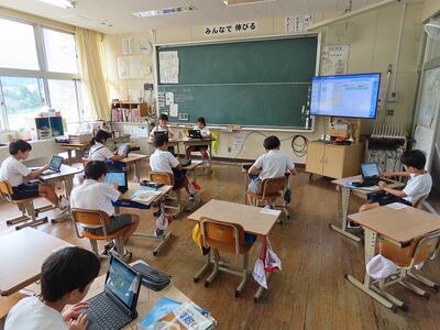 2年生と3年生は算数でe-ライブラリを活用して学び合っていました。