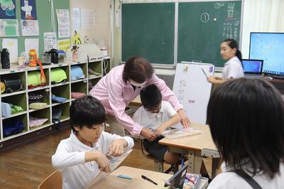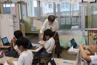 複式学級を中心とした授業支援のため、コミュニティ・スクールの委員さんたちにたくさん関わっていただいています。