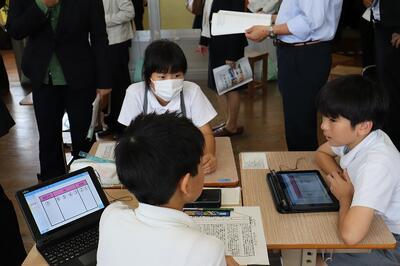 参観された方からは、「学習リーダーの役割が良かった」、「タブレットをこれだけ活用できるのがとてもいい」「子供たちが主体的に考えている」等のご意見をいただきました。