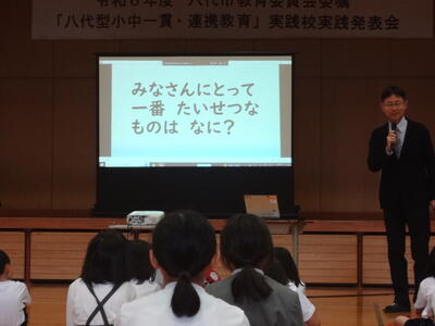 全体会では、東陽小・中学校の取組を高く評価していただきました。