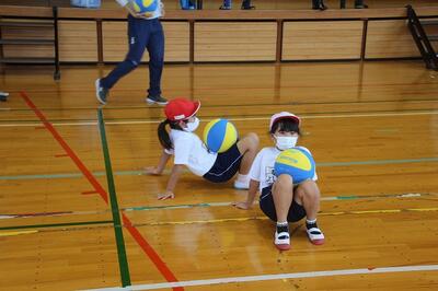 体育科の学習では、多様な動きをつくる運動遊びを行いました。この運動遊びには、体のバランスをとる・体を移動する・用具を操作する・力試しの4つから構成されています。今回は、用具(ボール)を操作する運動遊びでした。ボールを投げる・捕る・つく・運ぶなどを体勢や部位を変化させて運動しました。おなかの上に乗せて運んだり、二人でおなかにはさんで運んだりして楽しそうに活動していました。