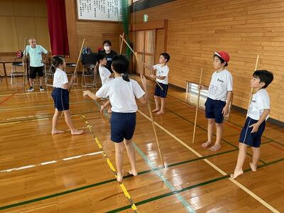 小学校の体育館では、「坂より上棒踊り」の練習を行いました。