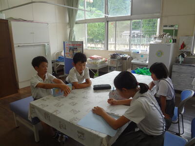 小中一貫・連携教育の一環として、小中学生が6つの班にわかれ、学び合いを行いました。