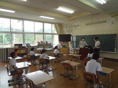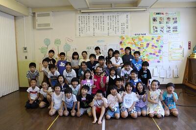 ALTのJ先生による夏休み英語教室を行い、36人の児童が参加してくれました