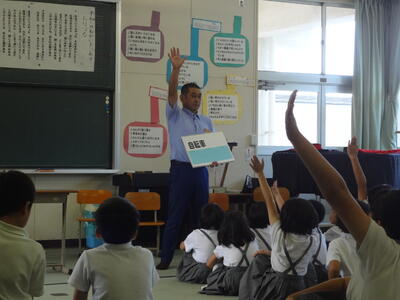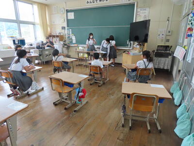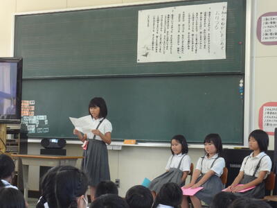 3名の児童が夏休みの思い出と2学期がんばりたいことを発表してくれました。
