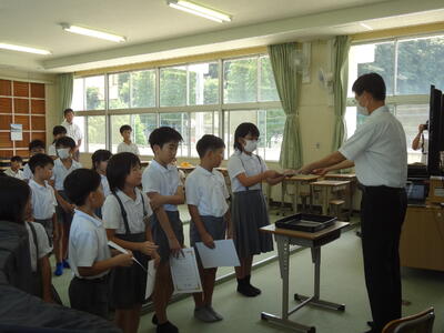まずは、あいさつ名人の表彰からでした。全校で29人!が表彰されました。