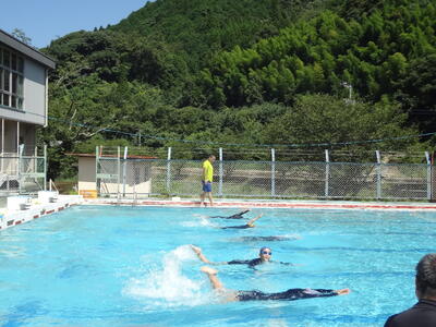 1・2年生と3~6年生に分かれ、水泳大会を行いました。