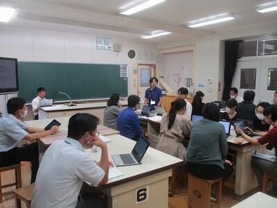 研修の中で、今後の小中合同学習(東陽寺子屋や伝統文化学習)において配慮すること、及び児童生徒の学習や生活について向上させていくための共同実践について協議を重ねました。