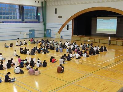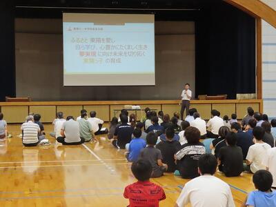 全体会では小中の両校長より、児童・生徒の実態や学校の特色等をお話ししました。
