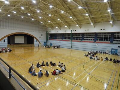 合同運動会で披露したソーラン節を体育館で踊りました。