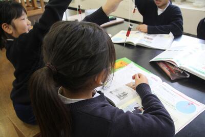 国語科では、説明文を読んで感想を持ち、伝え合う学習をしています。この日は、「中」の段落の読み取る活動を行いました。キーワード・接続語・指示語などを手がかりに、段落の関係を考えました。学習リーダーを中心に読み取ったことを伝え合いました。