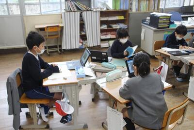 体育科ではとびばこ運動遊びを行いました。まず、動物の動きのまねをして、自分の腕を使って体を支える動きづくりをしました。次に、跳び箱を縦に並べて、いろいろな動きづくりをしました。ジャンプをしたり開脚跳びをしたりして、楽しんでいました。最後に、動きのよかった人を見つけて、伝え合っていました。