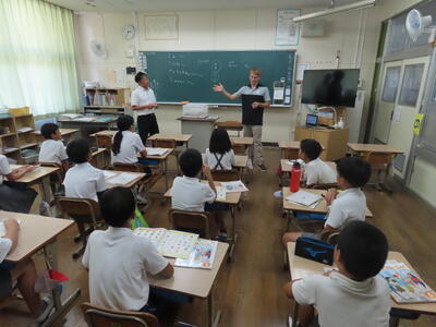 6年生は外国語活動で、ショーン先生と英語で会話を楽しんでいました。