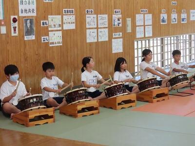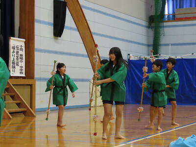 11月24日(日)に行われた東陽町文化の祭典。1・2年生が合唱と合奏、3・4・5・6年生と東陽中学生が古くから継承されてきた「石匠太鼓」「箱石銭太鼓踊り」「坂より上棒踊り」の3つの踊りを発表しました。