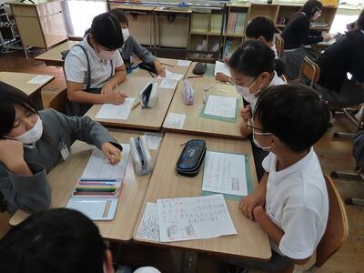 1年生は国語で学んだことを生かし、イラストも入れて説明文を書き、発表し合っていました。