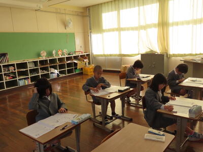2年生から4年生はテストをしていました。