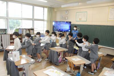 生活科の町たんけんのまとめとして、氷川町立宮原小学校の2年生とオンラインでの交流会を行いました。お互いの校区のよさについて説明したりクイズにしたりして分かりやすく発表できました。目的意識や相手意識がはっきりしているので、子どもたちの意欲が高まりました。宮原小学校の皆さん、ありがとうございました。