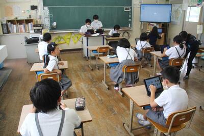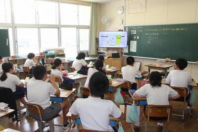 5・6年複式学級国語科の研究授業を行いました。八代市教育サポートセンターのN先生や東陽中学校の先生方に参加していただきました。この研究授業では、児童の主体的な学びとして学習リーダーの役割や、自分の考えを伝え合う活動の充実が研究の柱となっています。この授業を行うに当たって、5年生は現地見学、6年生は聞き取り調査等を事前に行っていましたので、子どもたちの学習意欲は高まっていました。学習リーダーが、活動時間を設定したり発言者を指名したりして、自分たちの力で授業を進めました。授業の終わりには,両学年から自分たちが学習したことを伝え合うことができました。たくさんの先生方に見られて緊張したと思いますが、5・6年生はがんばりました。八代市教育サポートセンターのN先生、東陽中学校の先生方、ありがとうございました。
