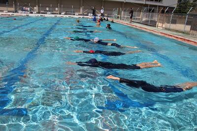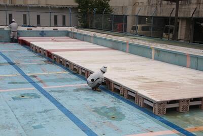 本校には小プールがありません。それでプールフロアを2コース分設置して、1・2年生が安全に学習できるようにしています。先日全員で掃除を行ったプールに業者の方がプールフロアを設置してくださいました。これで安心して水泳の学習ができそうです。