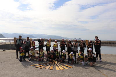 まずはペーロン艇にチャレンジしました。最初は漕ぐリズムも揃わず船もあまり進まなかったのですが、
