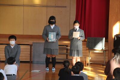 やまびこの集い(児童集会)を行いました。前回は感染防止対策のため運動場で行いましたが、今回は体育館で行いました。環境委員会から図書の紹介と読書週間の取組についての発表でした。発表後に、フロアの児童から感想発表がありました。多くの人が手を挙げ、自分の感想を伝えてくれました。伝え合うことの大切さを考えて取り組んでいます。