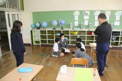 八代教育事務所の3人の先生方が来校して、全クラスの授業の様子を参観されました。特に、複式学級の授業の様子を熱心に見られました。その後、校長室にて本校の学校概要説明を行い、それについて助言をしていただきました。小中一貫・連携教育や地域とともにある学校づくりの推進、アドバイスしていただいたことを生かしながら、みんなが「LOVE☆LOVE☆LOVE」(今年度本校のスローガン)になる学校にしていきます。3人の先生方、ありがとうございました。