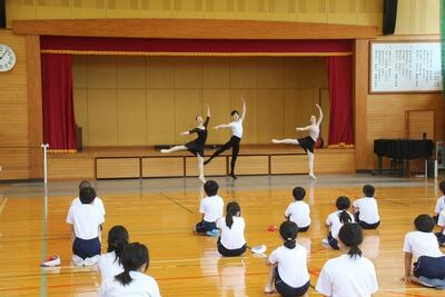 神戸市のS・Hバレエ団の方に来ていただき、バレエのワークショップを体育館で行いました。4人のダンサーの動きについて説明をしてくださるので、とてもよく分かりました。しなやかな体の動き、凜とした立ち振る舞い、ステップや回転などのスキル、柔軟性などなど、体を使っての表現力の素晴らしさに魅了されました。6月14日(水)10:35~東陽スポーツセンターでこのバレエ団に公演をしていただきます。一緒にすてきなバレエを楽しみませんか。地域の皆さん、ご来場をお待ちしております。