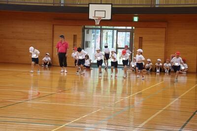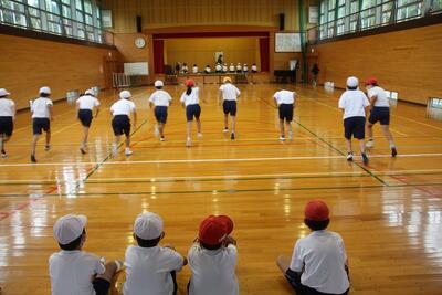 4年ぶりに小中合同の運動会を行います。そのため、小中合同での練習を実施しています。今回はダンシング玉入れの紹介です。中学生のリーダーが競技の説明をしてくれました。動画を見てダンスの説明をしてもらい、中学生が手本を見せてくれました。東京ディズニーランドの「ジャンボリーミッキー」の曲に合わせて、ノリノリのダンスを見せてくれました。小学生もその雰囲気に飲み込まれて、ノリノリでダンスをしました。ダンスに夢中になり玉入れの競技を忘れそうになりました。地域の皆さん、当日はみんなでダンスしましょう。