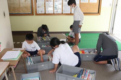 この日は月に一度の「ともだち号」の来校日でした。「ともだち号」とは八代市立図書館が運営する移動図書館で、毎月14日間八代市内の施設を巡回して図書の貸し出しを提供してくれます。一人10冊まで借りることができ、返却は次回の来校日までなので、本好きの児童にはたまらないサービスです。給食後すぐにともだち号のもとへ駆けつけ、本選びに夢中になっている児童がいました。環境・図書委員会の児童が、学級ごとに借りた本のチェックや仕分けをしていました。「ともだち号」に関わってくださる皆さん、いつもありがとうございます。