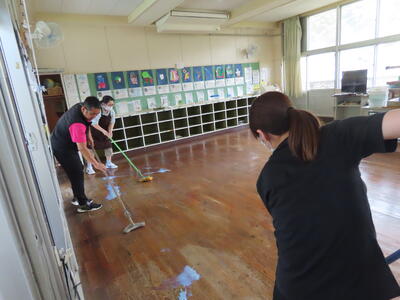 2学期に向け、暑い中でしたが、ワックスがけと資料室等の整理を行いました。