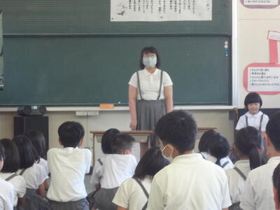 3名の児童が夏休みの思い出と2学期がんばりたいことを発表してくれました。