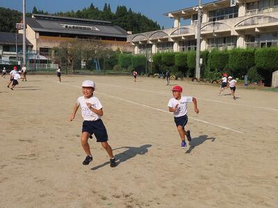 体育委員の説明後、みんなで運動場を駆け回りながら楽しみました。