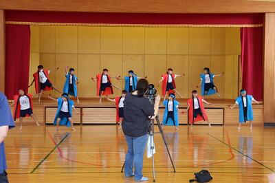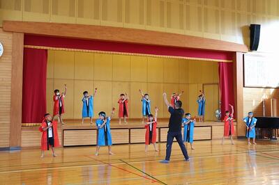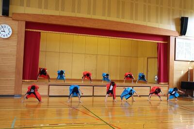 合同運動会で披露したソーラン節を体育館で踊りました。