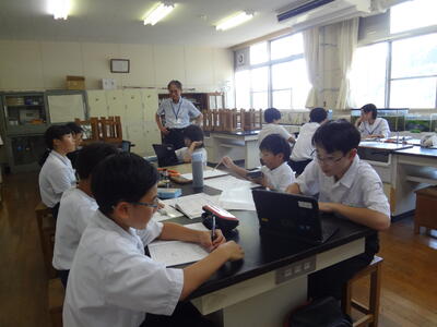 小中一貫・連携教育の一環として、小中学生が6つの班にわかれ、学び合いを行いました。