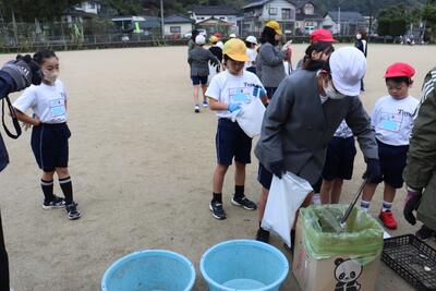 学校周辺を6カ所に分かれて歩きながら、ゴミを拾いました。