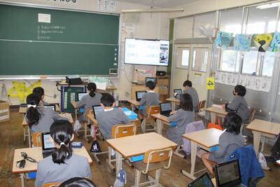 法務少年支援センターくまもとのTさんを招いて、5・6年生を対象に薬物乱用防止教室を行いました。感染症対策として、対面とオンラインを併用して行いました。処方箋の薬の服用の仕方や、たばこの煙やアルコールの害などについての説明がありました。今後、いろいろな形で出会う薬物への対応策まで教えていただきました。Tさん、ありがとうございました。