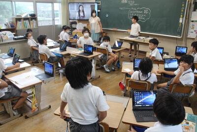 国語科では、単元はじめに新出漢字の学習を行います。この日は、新しい単元に入ったので、新しい漢字の学習をしました。学習リーダーがデジタル教科書を使って筆順や読み方を伝え、みんなで空書きをして筆順を確かめてから、漢字ドリルに記入しました。自分たちで学習を進めることに慣れてきた2年生です。