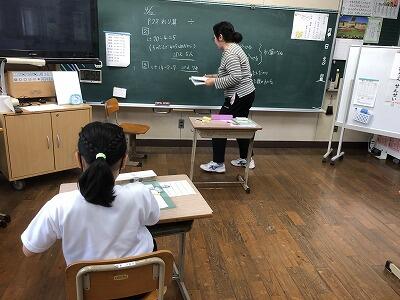5・6年生は道徳の授業で「見えた答案」を教材とし、正直に生きることについて考えました。4年生は算数の「折れ線グラフ」、3年生は算数の「割り算」を学びました。2年生は国語で「漢字の成り立ち」を、1年生は国語「どうぞよろしく」で名前の書き方を学びました。