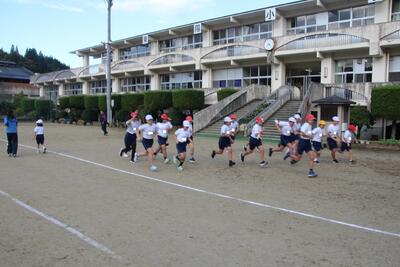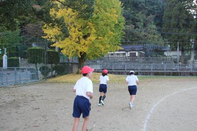 運動場にあるイチョウの木が色づき始める中、朝の活動では5分間走を行っています。朝は寒いと感じる気温になり、児童の走るスピードがだんだん速くなってきました。12月には持久走大会があります。毎日の走りを生かしてくれることでしょう。