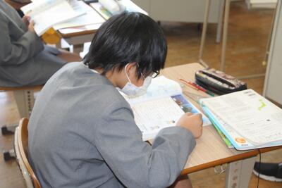 国語科では、「枕草子」などの古文を音読し、言葉の響きやリズムに親しみました。その後、春をイメージして感じたことや考えたことなどを文に表す学習をしました。桜や入学式・新学期などをテーマに自分なりに表現しました。
