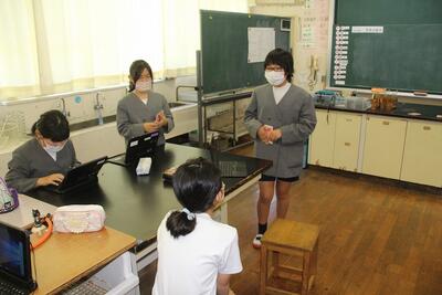 理科では、天気の変化の学習が終わりました。この日は、これまで学習した雲の動きや量・種類などについて、自分なりにタブレットにまとめて伝え合いました。積乱雲についての発表があり、積乱雲の怖さがよく分かりました。
