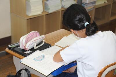 理科では、植物の発芽と成長について学習を始めました。この日は、植物の発芽の条件について考え、水・空気・肥料・日光などの条件を変えて行う実験の準備をしました。プラのコップの底に穴を開け、バーミキュライト(土壌改良の土)を入れ、インゲン豆の種子を入れました。結果がとても楽しみです。