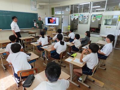 6年生は外国語活動で、ショーン先生と英語で会話を楽しんでいました。